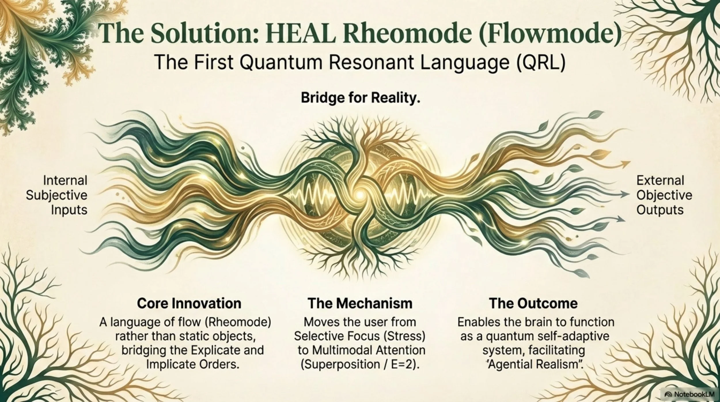 HEAL (Human Experience Augmenting Language) is a consciousness protocol with “quantum resonant grammar” that bridges the gap between subjective experience, biological reality, and social environments. By treating the body as a “living laboratory,” it provides a systematic structure to map and decode experience into meaningful symbolic insights. This enables individuals to recognize both the triggers and patterns representing unresolved experiences, ultimately restoring the natural self-regulating flow of allostasis.